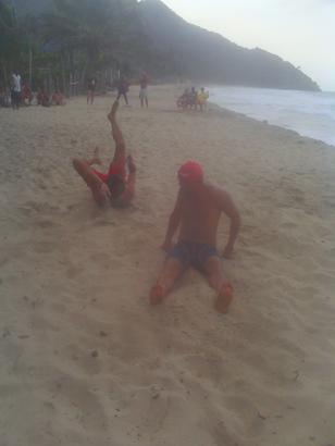昼食をかきこみ波乗りを楽しんだ後は、ビーチフラッグス。ベネズエラでの競技会開催を見据えて、ルールや細かい注意点・会場作りなどの説明から入り、実際に審判やスタッフ・選手に分かれて競技をしました。競技会ルールは世界共通な部分がほとんどなので、自分もかなりの部分で彼らの理解に貢献できたかなと感じています。