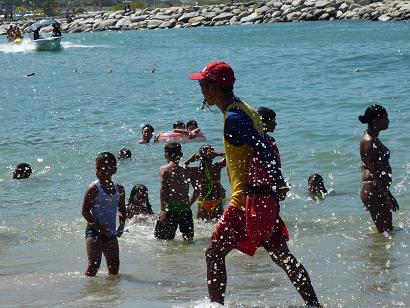 1年半前、ベネズエラでガードを始めた頃、売店の人に言われた言葉、「ライフセーバーは(子どもたちの)ヒーローなんだから厳格でなくてはいけない。そして流れたボールを取りに行ったりとか、写真に一緒に写るとかサービス精神旺盛に対応しなくてはいけない。そうすることでまたここに来る人が増えて、ライフセーバーのいない浜で泳ぐ人は減って事故も少なくなり、売店も儲かって、皆ハッピーになれる。」なんともラテン的な発言ですが、この言葉のおかげで、お客様第一主義でガードが出来たような気がします。今では名前を呼んでくれる常連さんも出来ましたし…。