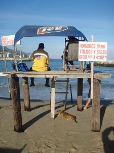 浜にはライフセーバーの姿はありませんでしたが、海の家で話を聞くと繁忙期には海の家単位でライフセーバーを雇うそうです。どこの海の家も自分の店の目の前では絶対に事故を起こしたくないようでした。長い砂浜でしたがどこの海の家に行っても、「ルーベン向こうの海の家の前でよく働いているよ」とか「おまえもライフセーバーか?ライフセーバーに悪いやつはいないからあがっていけ」という言葉にマルガリータのライフセーバーがいかに地域に密着した活動を行なってきたかが感じられました。