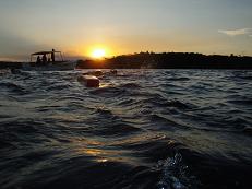 夕日に向かって泳ぐ!