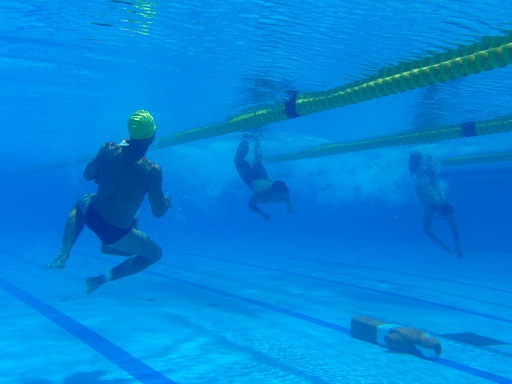 レスキューチューブレスキューではフィンを持ってきた選手が少なかったため、こちらもフィン無しの特別ルールで行われました。